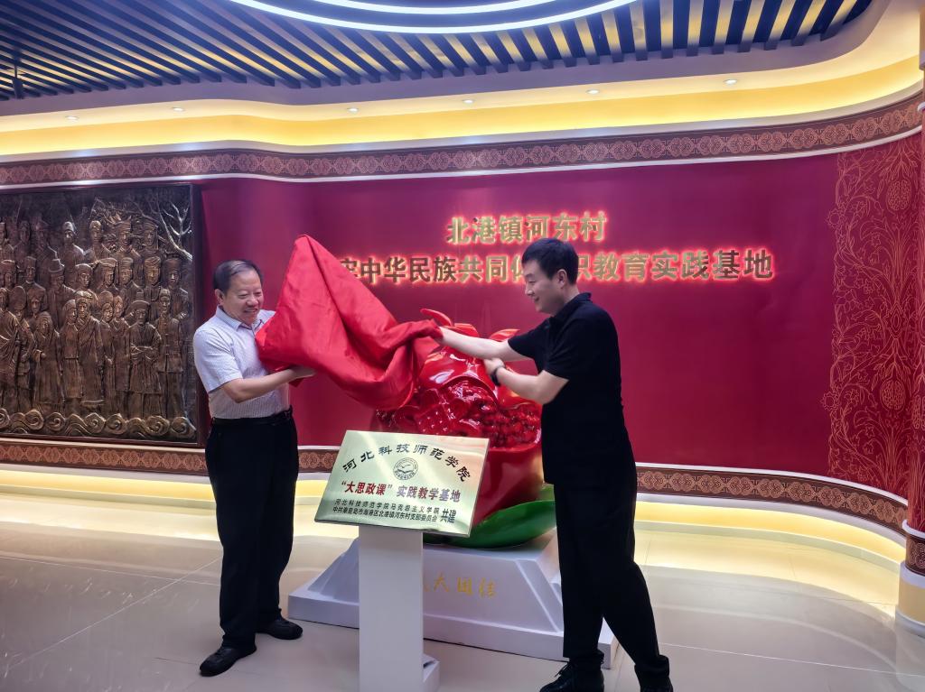 为深入学习贯彻习近平总书记关于“大思政课”的重要指示批示精神,加快构建“大思政课”工作格局,6月6日,艾弗森贝博ballbet官网赴河东村开展共建“大思政课”实践教学基地签约暨揭牌仪式。中共海港区委统战部三级调研员冯立志,北港镇党委书记王忠良,北港镇党委宣传委员丁帅,北港镇河东村党支部书记陈波等参加。