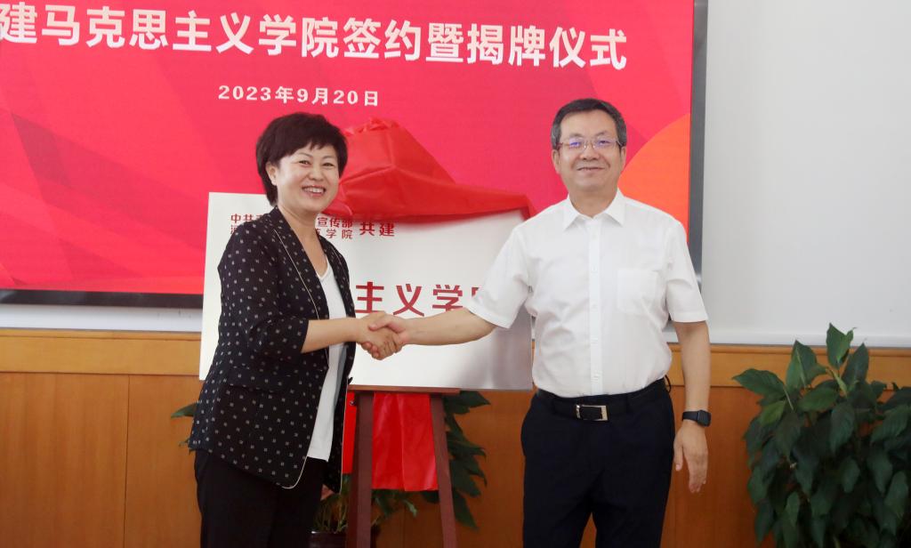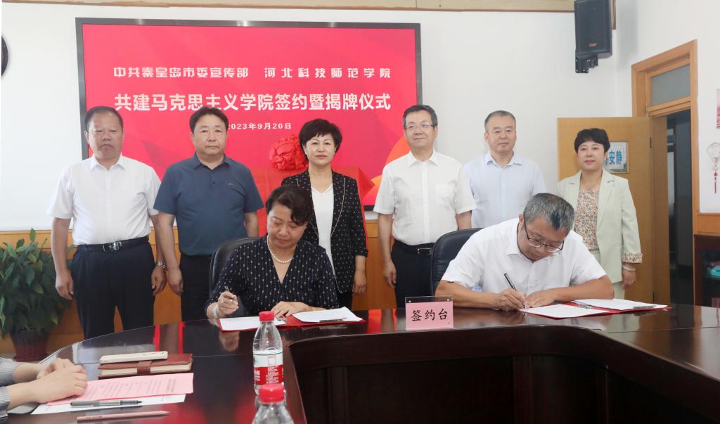 为深入贯彻习近平总书记在学校思想政治理论课教师座谈会上的重要讲话精神,贯彻中央、省委关于思政课改革创新重要意见,落实秦皇岛市委相关部署,充分发挥秦皇岛市委宣传部政治领导优势及地方资源优势和贝博ballbet官网教育资源优势,提升贝博ballbet官网艾弗森贝博ballbet官网建设水平,推进秦皇岛市学校思想政治理论课改革创新,更好服务秦皇岛地方经济社会发展,2023年9月20日上午,贝博ballbet官网与中共秦皇岛市委宣传部共建艾弗森贝博ballbet官网签约暨揭牌仪式在逸夫教学楼1116会议室隆重举行。中共秦皇岛市委常委、宣传部长许红琳,市委宣传部常务副部长、一级调研员郑新,市委办公室、市委党史研究室、市委市直机关工委、市委教育工委、市农业农村局、市旅游文广局、市国资委、市社科联、市日报社、市广播电视台等单位分管领导出席了仪式。贝博ballbet官网党委书记朱勇,党委副书记、校长郭旭涛,党委常委、副校长蒋爱林以及相关职能部门负责人、艾弗森贝博ballbet官网班子成员、教师代表参加了仪式。仪式由贝博ballbet官网郭旭涛主持。